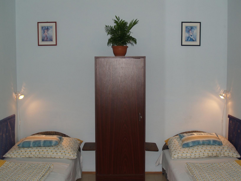 Összesen 5, kétágyas nemdohányzó szobát kínálunk, a férőhelyek száma 10. Kétágyas szobáink mindegyike saját zuhanyzóval, WC-vel, TV-vel, hűtőszekrénnyel valamint vízforralóval, kávéfőzővel felszerelt.